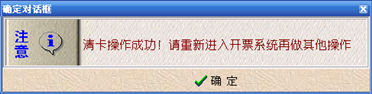 2、 点击“远程报税/清卡操作”菜单项,系统即提示“正在进行清卡中”,并根据报税查询的结果对IC卡进行清卡操作。如果清卡成功,系统会弹出如图所示的提示对话框,提示“清卡成功”。