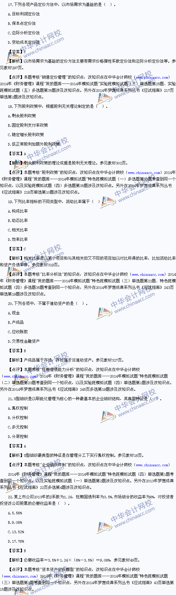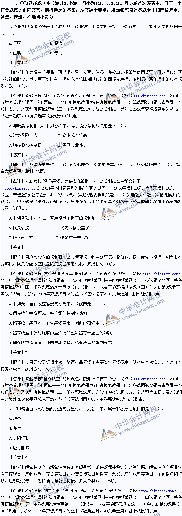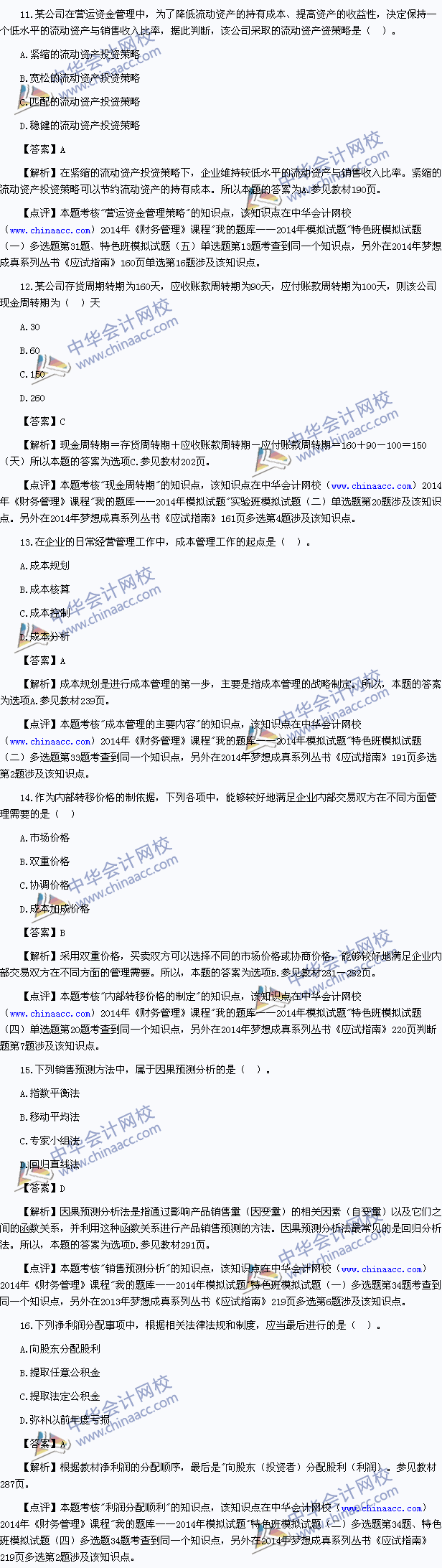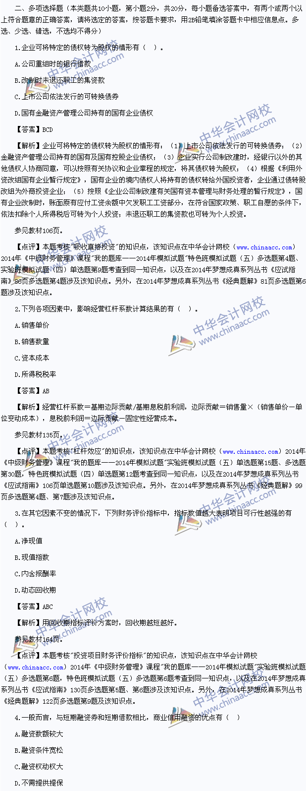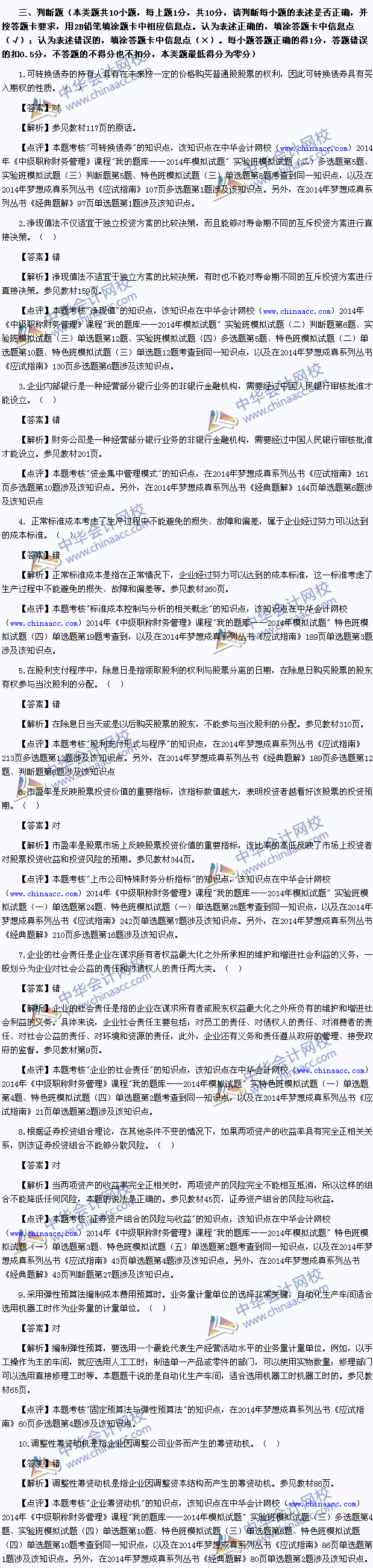 2014中级会计师真题-财务管理考试真题及解析 2014中级会计师考试已经结束,以下为中华会计网校版的2014中级财务管理真题及参考解析,供参考: 2014年度全国会计专业技术资格考试 中级会计资格 财务管理试题 (本试题包括客观试题和主观试题两部分)