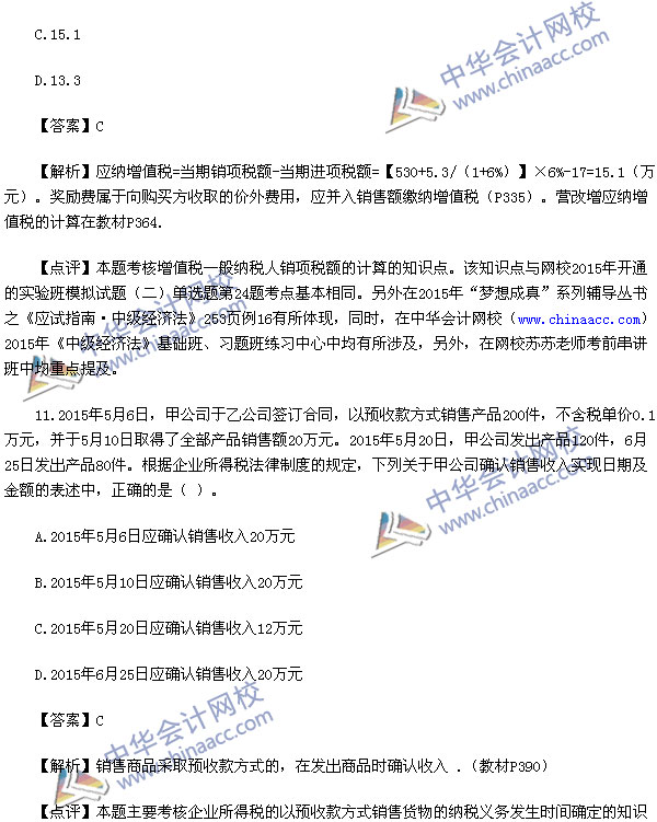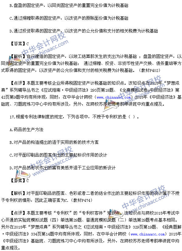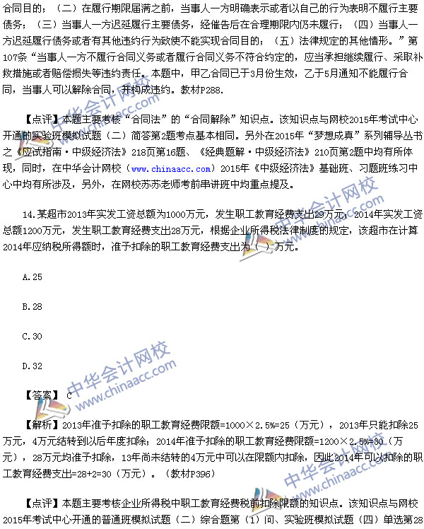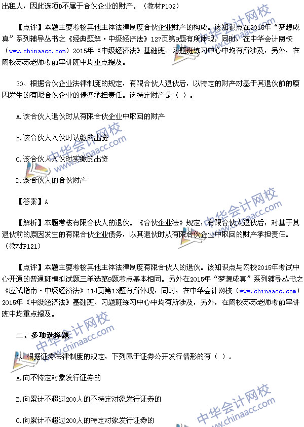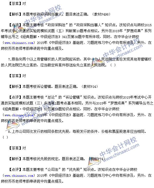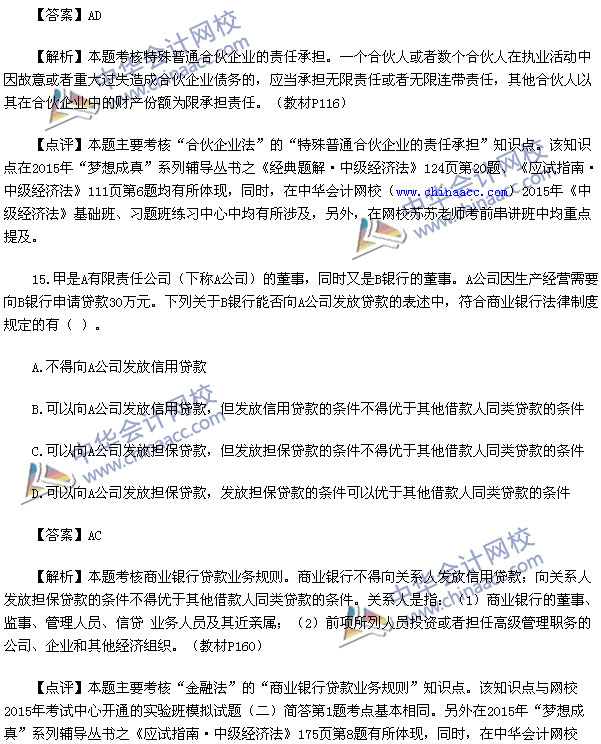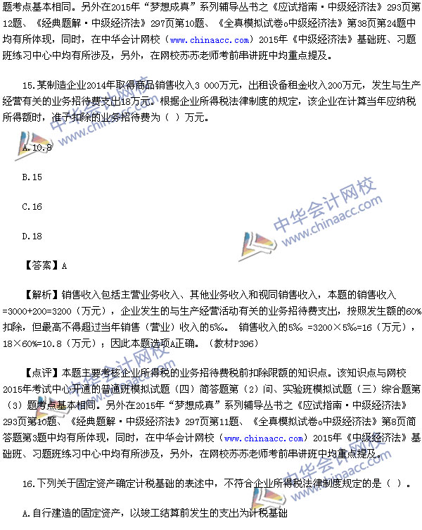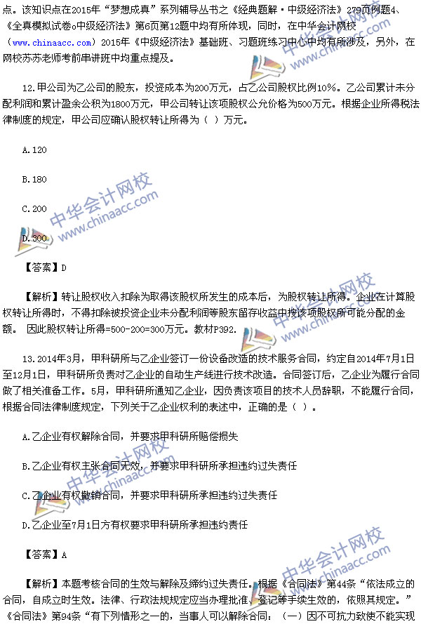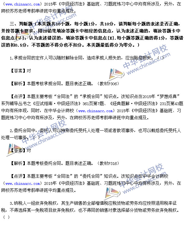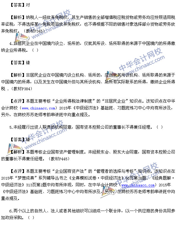 2015中级会计师考试之中级经济法考试已经结束,中华会计网校第一时间对2015中级经济法考试真题进行了解析,供参考: