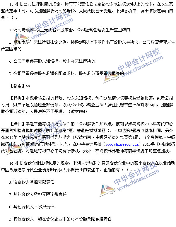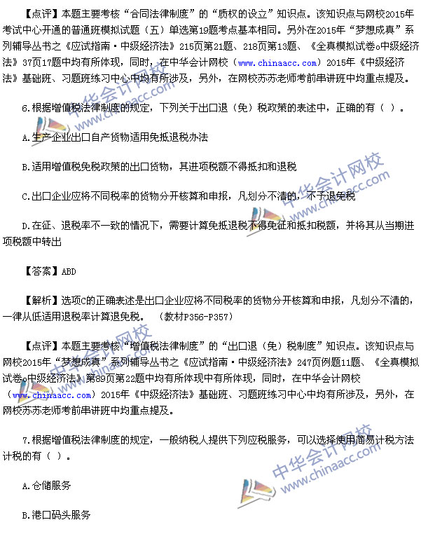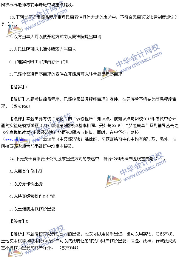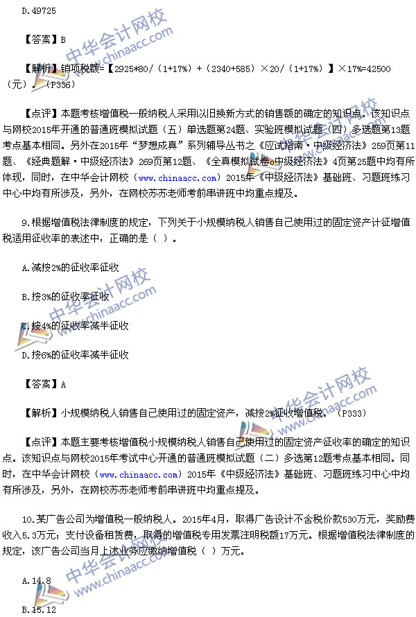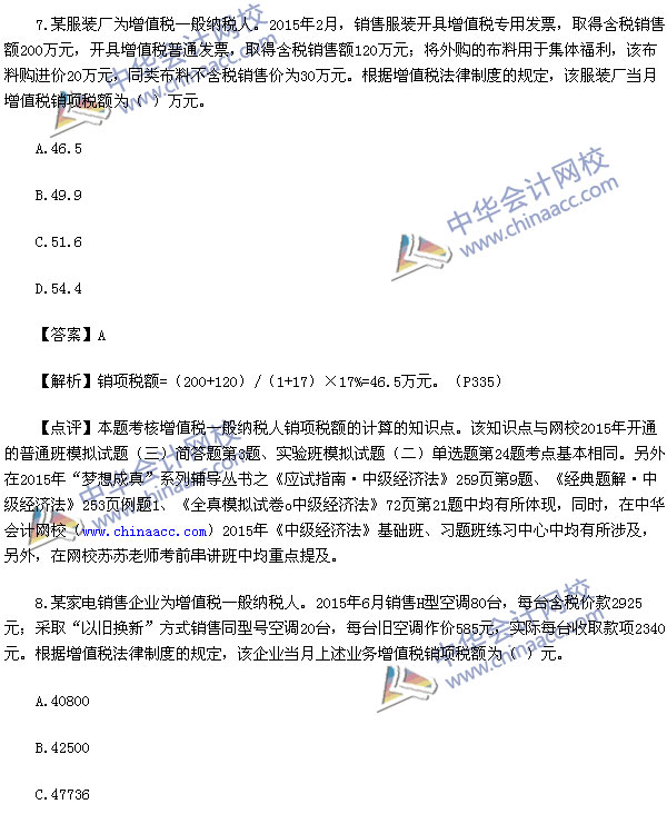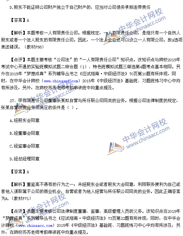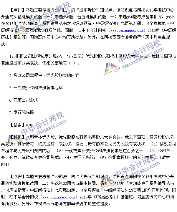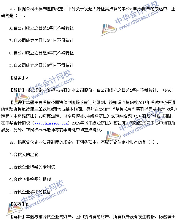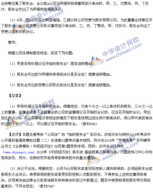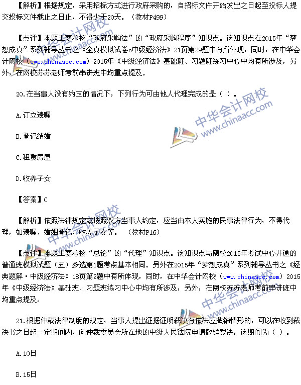 2015中级会计师考试之中级经济法考试已经结束,中华会计网校第一时间对2015中级经济法考试真题进行了解析,供参考: