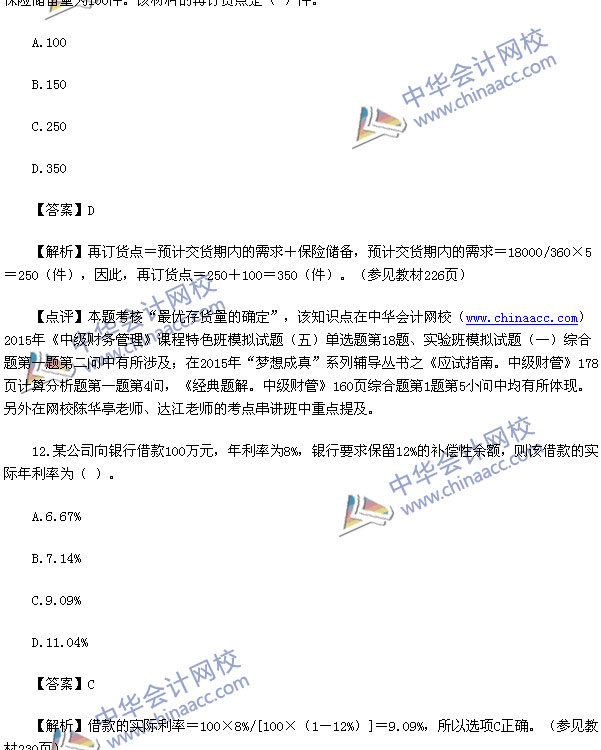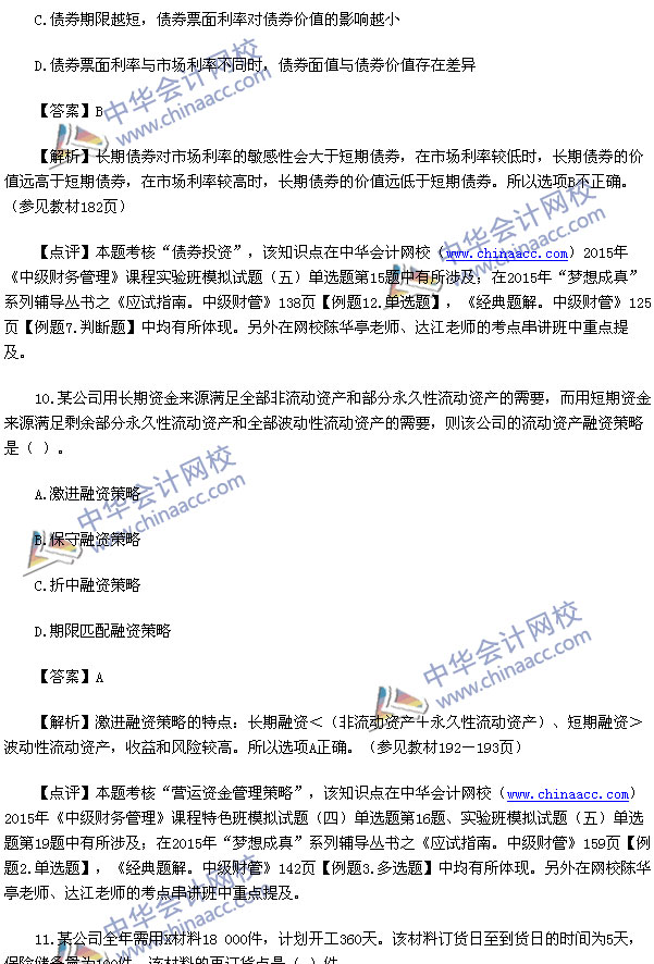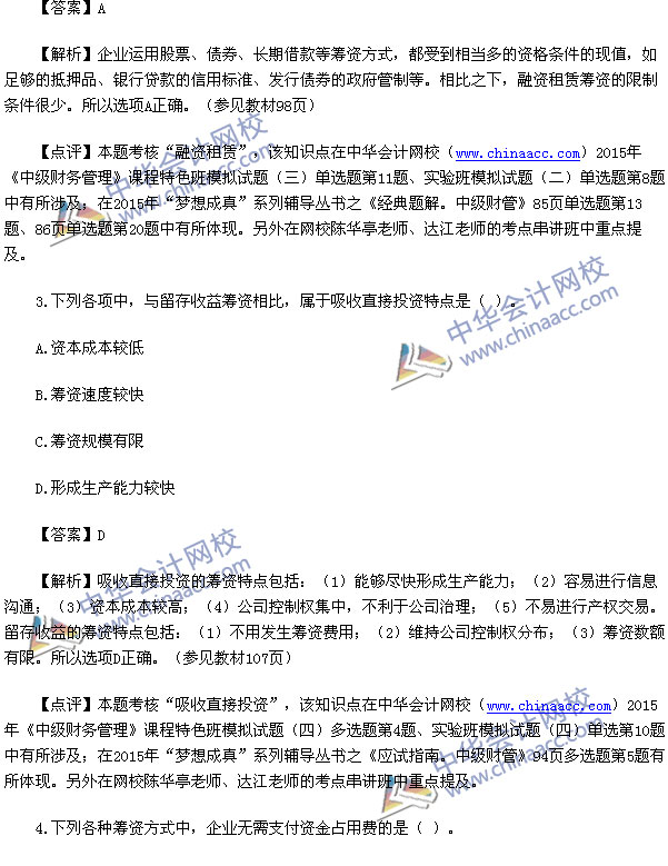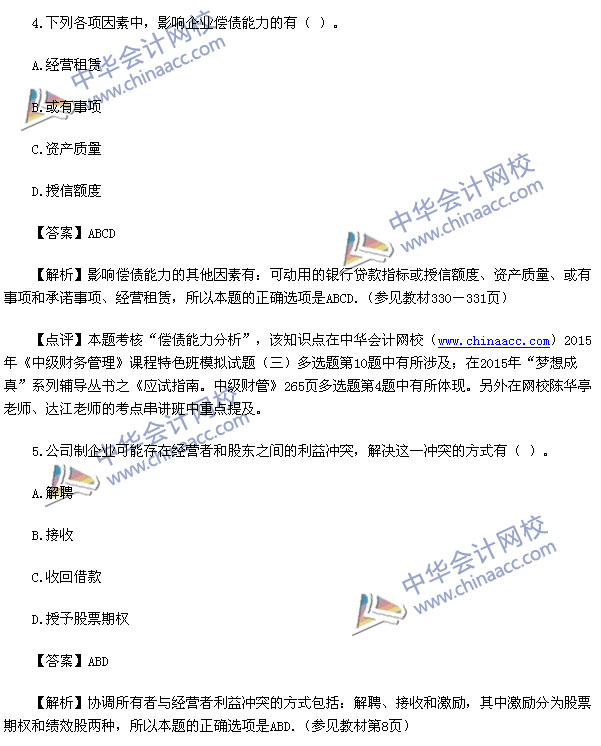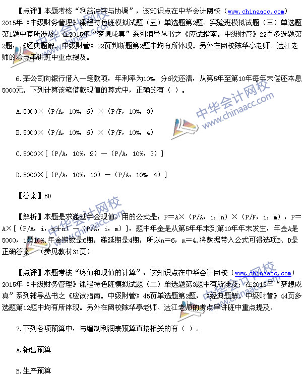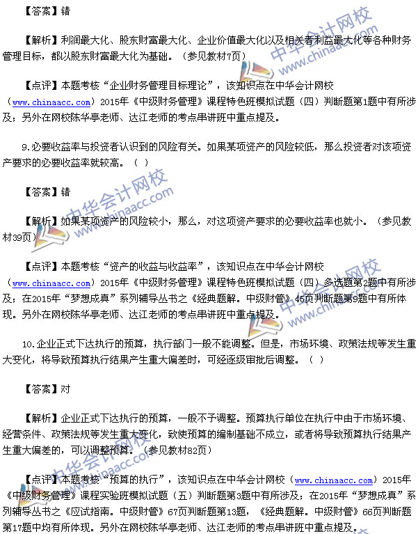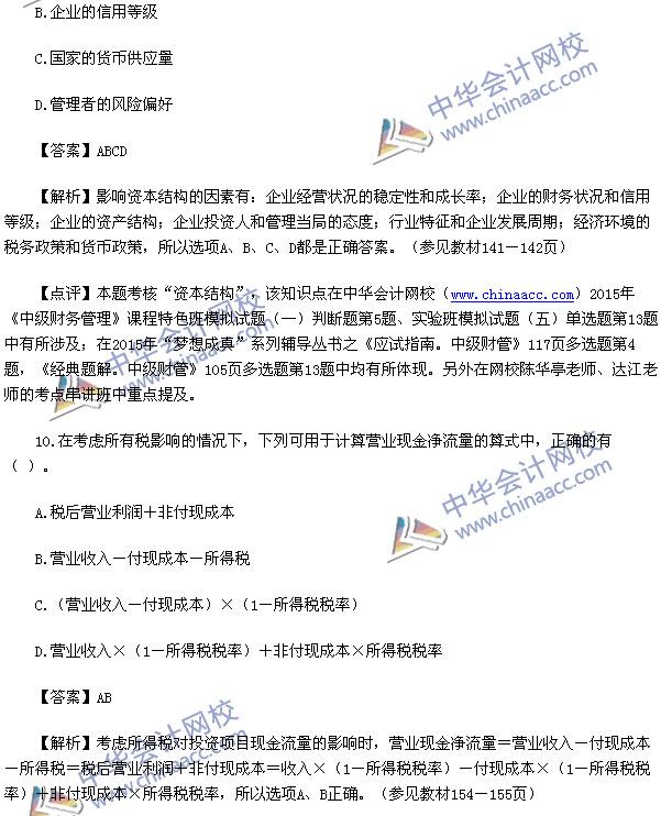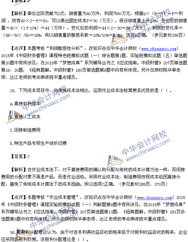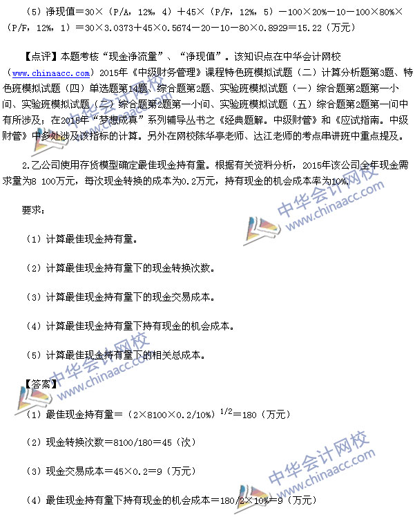 2015中级财务管理真题及解析-2015中级会计师真题