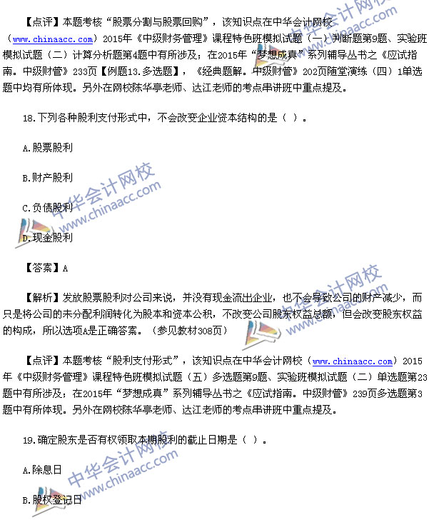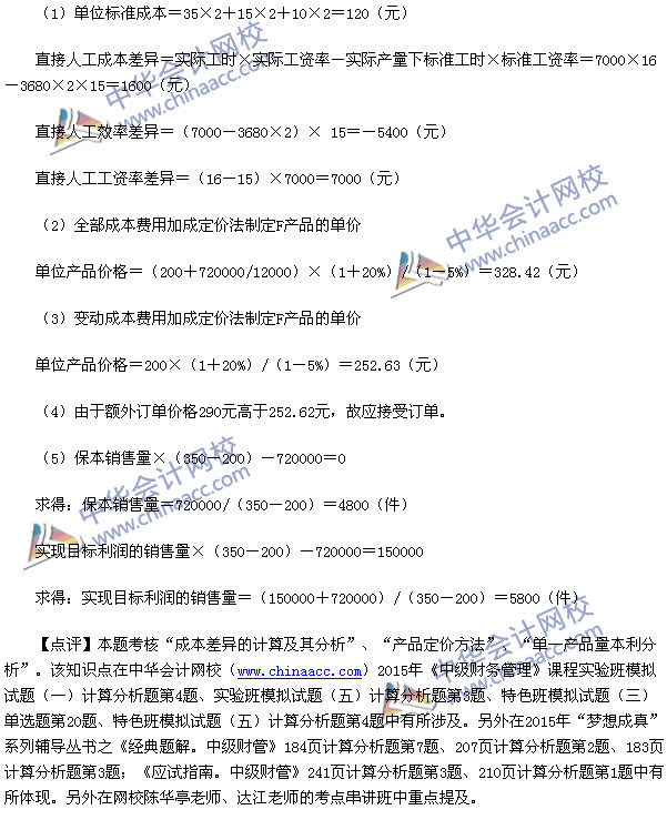 2015中级财务管理考试已经结束,中华会计网校第一时间根据学员回忆提供的2015中级财务管理考题整理了真题汇总以及答案解析:
