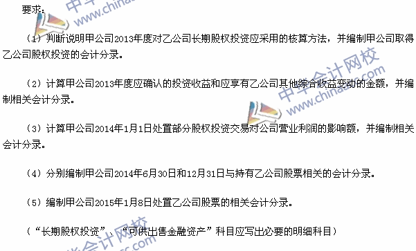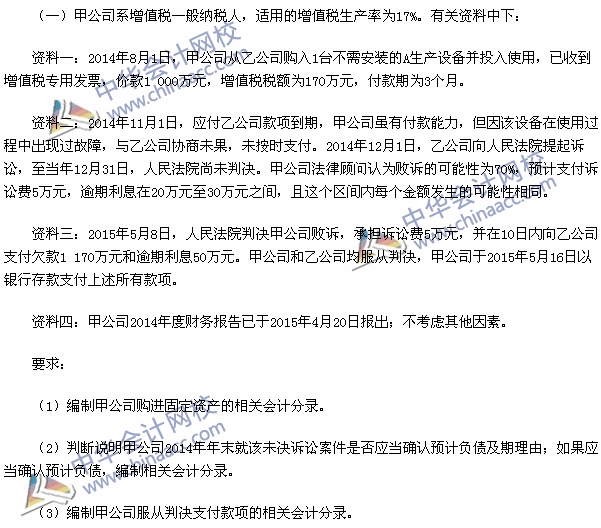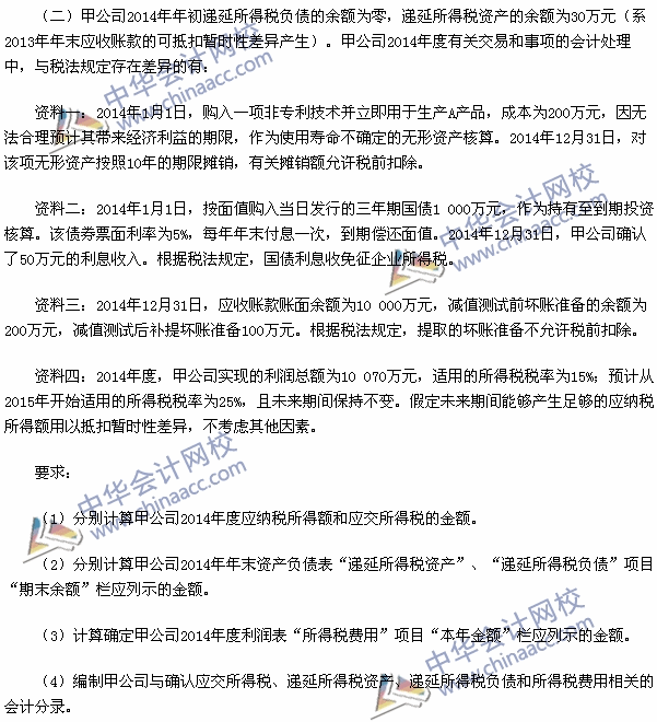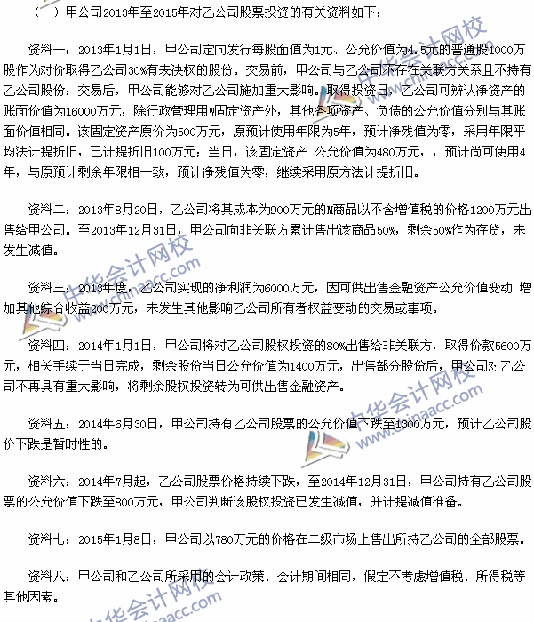 2015中级会计师考试真题-2015中级会计实务真题 2015中级会计师考试最后一门中级会计实务考试已经结束了,中华会计网第一时间根据网友回忆搜集整理的2015中级会计师考试真题之中级会计实务真题及答案解析如下,供参考: